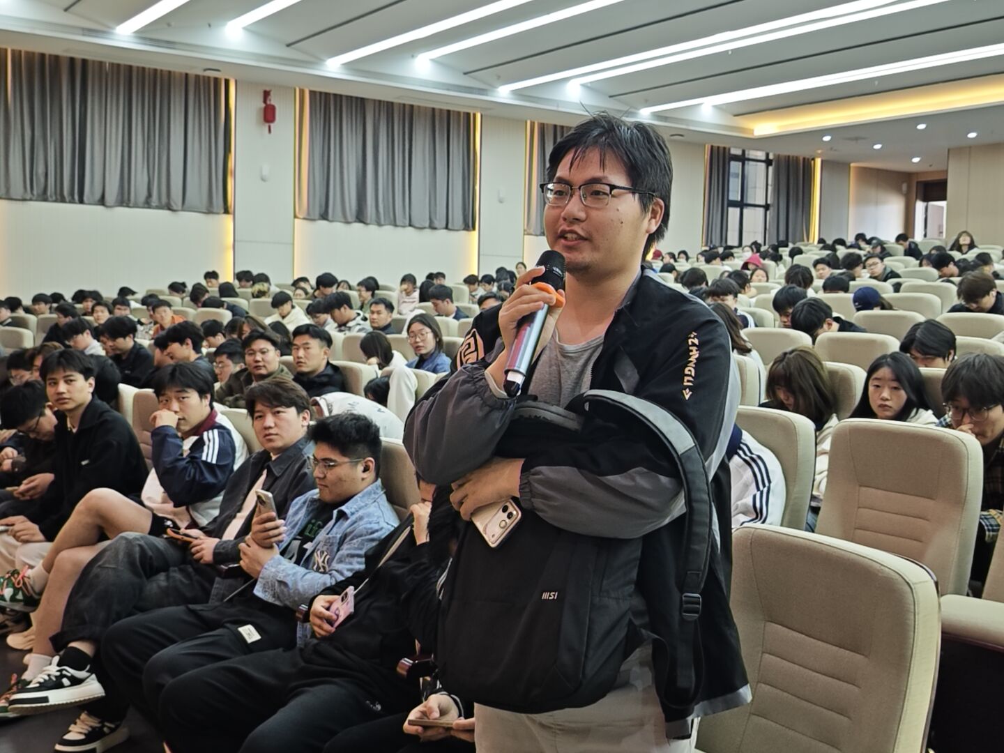 互动环节中,同学们就大模型学习路径、认证备考、实习就业等踊跃提问,贾子才耐心解答,现场气氛热烈。