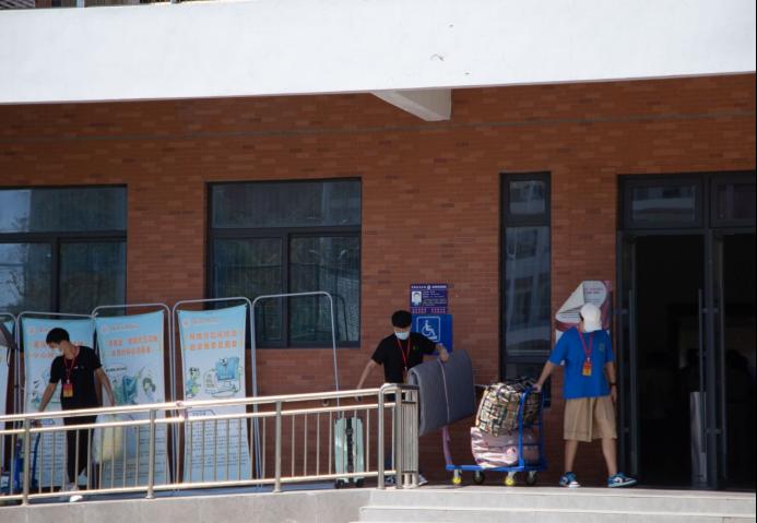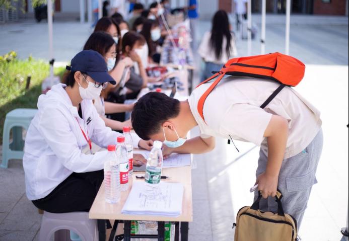 电子信息学院的新生跟随学校的大巴或摆渡车到达宿舍楼下,我们的志愿者会立即微笑的迎上去:“您好”,“欢迎来到学校”,并“抢”下新生手中沉重的行李,将新生带领到自己的宿舍,不辞辛苦的解答着他们提出的这种问题,引导新生办理入学手续、缴费、做核酸等。报道期间,因我院将迎新工作准备充分、组织得力,所以迎新工作一直井然有序的进行着。