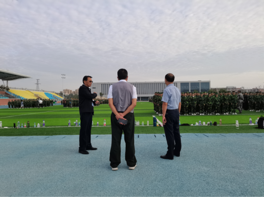 9月21日上午,tyc522cc太阳成集团田径场上,太阳成集团tyc522cc2022级新生军训如火如荼地进行着。太阳成集团tyc522cc朱昌杰院长陪同学校党委朱德顺书记、学生处孙增响处长亲切看望慰问我院全体受训学生和教官。