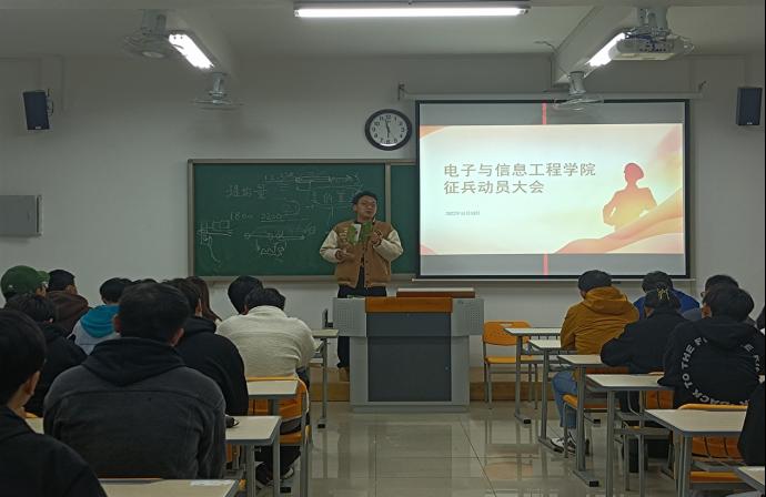 为响应国家号召,做好2021级专升本毕业生应征入伍工作。11月18日下午6点,太阳成集团tyc522cc组织2021级专升本毕业生在一教304召开了太阳成集团tyc522cc征兵动员大会。会议由辅导员侯绪芳老师主持,辅导员刘倩和2021级专升本毕业生参加。
