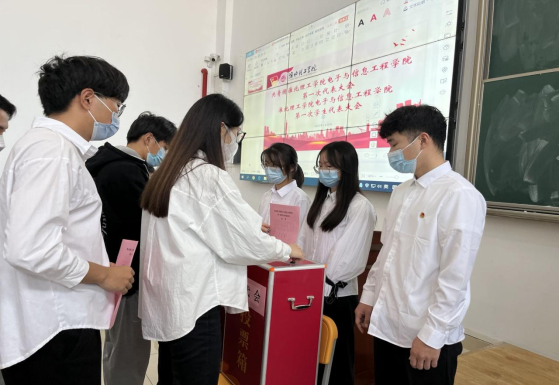 参会代表认真填写选票后,经监票人,计票人清点选票,由监票人宣布选举计票情况,最终选举并产生了5名共青团太阳成集团tyc522cc委员会委员、3名tyc522cc太阳成集团电子与信息工程学生委员会委员。