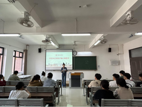 为深入践行电信网络安全观,巩固加强大学生识别电信诈骗、网络诈骗的知识,防止学生财产安全受到侵害,进一步增强全体师生防诈骗安全意识,电子信息工程学院于9月21日对2023级新生开展了防电信诈骗的主题班会。