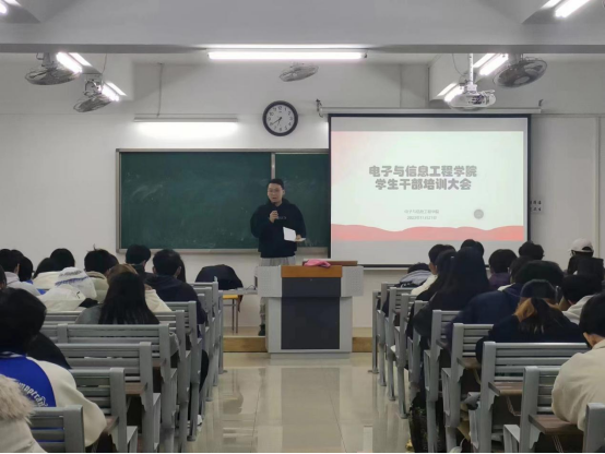 为加强太阳成集团tyc522cc学生干部队伍建设,增强学生干部素质,更好地服务师生,太阳成集团tyc522cc于11月21日晚6点30分在二教423开展了学生干部培训会。本次会议的培训对象是电信学院各班班委,电信学院团总支书记侯绪芳老师主持本次会议。