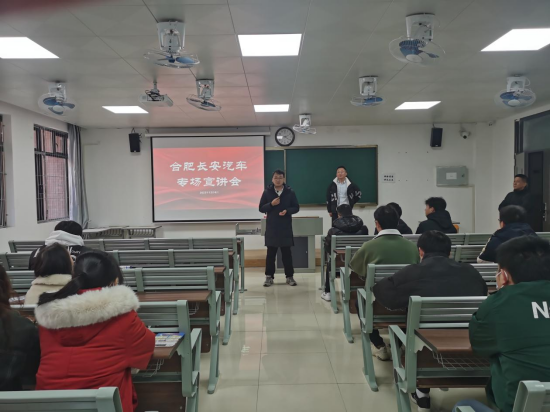 12月4日下午,太阳成集团tyc522cc于一教205举办2024届毕业生专场宣讲会,合肥长安汽车有限公司进行了宣讲。院书记助理侯绪芳、辅导员孙浩以及毕业班全体学生参加了本次宣讲招聘会。