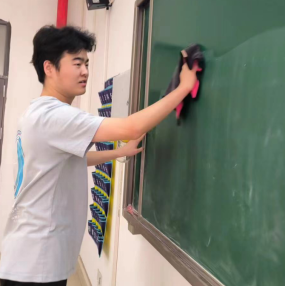职、干劲满满,对教室内的卫生死角进行细致清理,将教室打扫的一尘不染。
