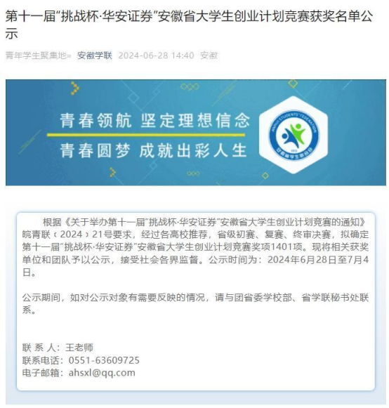 七、本届“青苗杯”是由团省委、省科技厅、省人力资源社会保障厅、省青联和省学联联合主办,合肥兴泰金融控股(集团)有限公司承办,安徽青年报、安徽中安创谷科技园、合肥滨湖金融小镇、合肥兴泰金融与创新研究院、中科科技培训中心、安徽工业互联网产业创新中心协办。