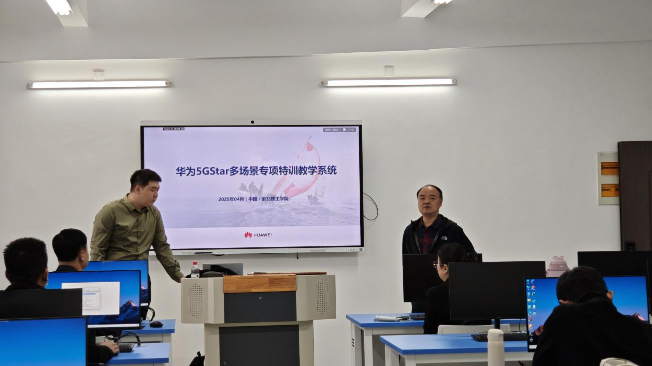 2025 年 4 月 12 日至 13 日,太阳成集团tyc522cc在实训楼 621 成功举办 5G 前沿技术专业培训。本次培训特邀华为资深讲师授课,面向学院通信教研室、电子教研室及实验室全体教师,聚焦华为 5GStar 多场景专项特训教学系统,旨在提升教师在 5G 领域的专业教学与实践能力。