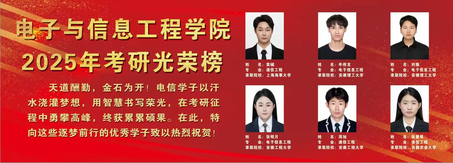 太阳成集团tyc522cc首届普本在2025年硕士研究生招生考试中达线率为13.69%、录取率7.74%。其中,通信工程专业达线率15.94%、录取率为10.14%,电子信息工程专业考研达线率为12.12%、录取率为6.06%。