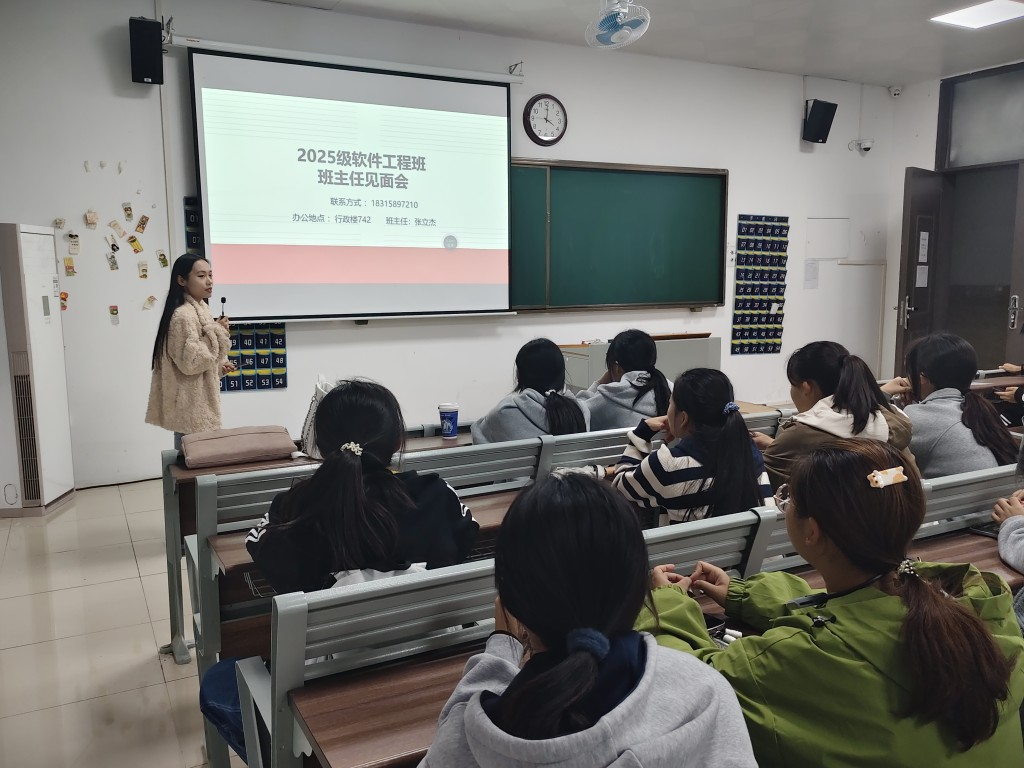 见面会上,各专业班主任首先聚焦专业核心价值与课程体系,为新生搭建系统的专业认知框架。人工智能相关专业班主任结合学科前沿动态,梳理“基础课程—核心技能—实践应用”的进阶路径,解读机器学习、计算机视觉、自然语言处理等核心方向在智能制造、智慧城市、医疗健康等领域的应用场景,通过数据对比展示专业就业前景与岗位能力要求;软件工程专业班主任阐述该学科作为数字经济核心支撑的重要性,明确“懂技术、会创新、能实践”的复合型人才培养目标,覆盖软件设计、开发、测试到维护的全流程知识体系;数据科学与大数据技术专业班主任以“三层能力金字塔”为模型,从底层数学与计算机基础、中层编程语言与技术框架,到顶层行业业务应用,拆解专业知识架构;电子信息工程专业班主任则从“学科交叉特性”“行业需求”出发,强调数学与编程基础对专业学习的关键作用,帮助新生建立对专业的清晰认知。