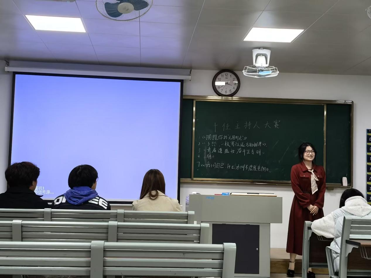 本次院级选拔严格参照校赛标准设置环节,分为自我介绍、模拟主持及临场问答三部分。选手们围绕科技科普、校园生活、文化传承等多元主题展开展示,风格各异却同样精彩。有的选手以清晰的逻辑和专业的表达模拟科技类节目主持,将电子信息专业特色融入内容;有的选手凭借活泼灵动的台风演绎校园晚会主持,互动感十足;还有的选手面对随机抽取的临场问答题目,沉着应对、思维敏捷,展现了良好的临场应变。