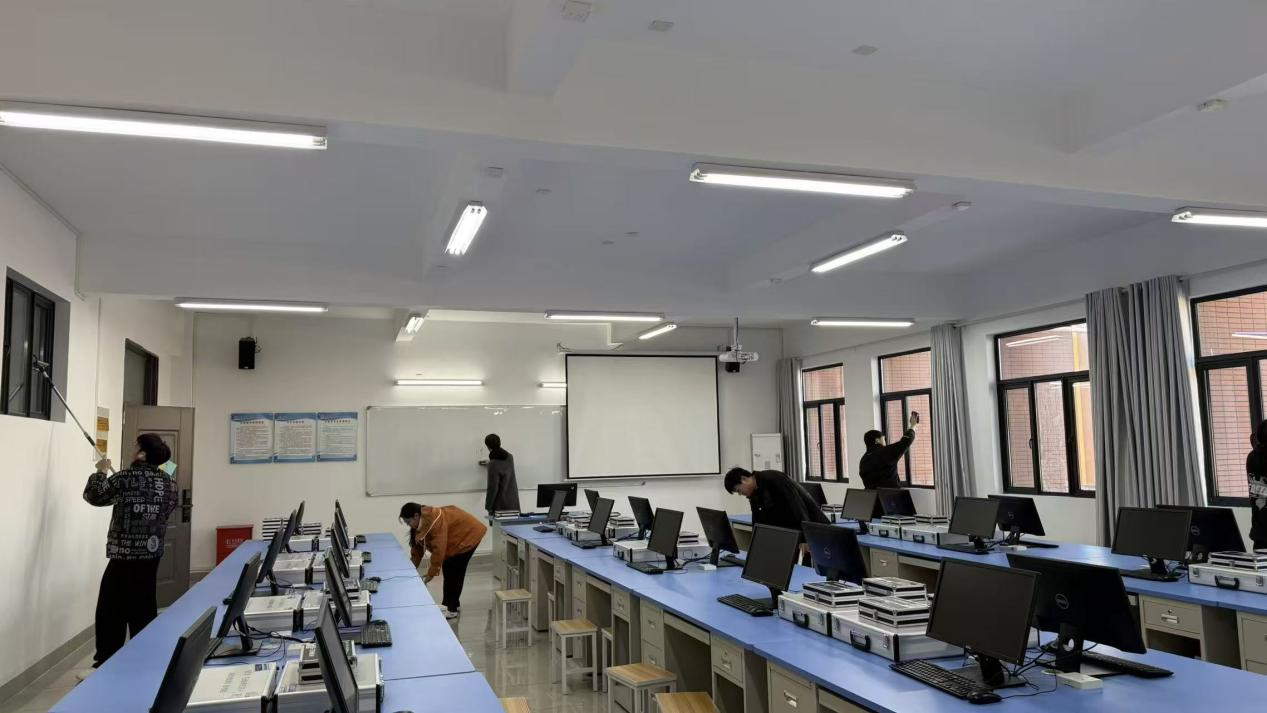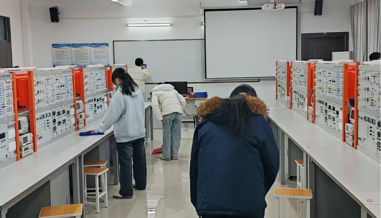 入党积极分子们自发组成多个劳动小组,依据既定分工方案有序推进各项任务。在实训室设备规整工作中,他们手持专用清洁工具,轻柔细致地擦拭设备表面,彻底清除积尘与污渍,恢复仪器洁净状态。实验室卫生清扫环节中,他们主动领取扫帚、拖把等工具,对操作台面、仪器缝隙、地面死角等区域实施全覆盖式清洁,以“地毯式排查”标准确保环境整洁无遗漏。现场处处可见他们穿梭忙碌却有条不紊的身影,充分展现出新时代入党积极分子昂扬向上的精神品格,以及主动担当作为的责任感与心系集体的荣誉感。