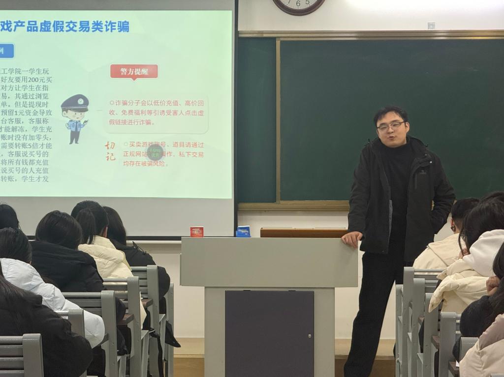 在班会上,辅导员与班委学生担任宣讲员,列举近期高发的“网络刷单返利”、“虚假校园贷”、“冒充客服退款”、“游戏账号交易诈骗”等典型案例,帮助同学们了解校园诈骗形式。班会结合《网络安全法》、《数据安全法》等相关法律法规,强调了个人信息保护的重要性,并指导学生如何在网络社交、应用注册等场景中最小化暴露个人信息,以及利用隐私设置加强防护。部分班级还组织观看了由公安部门发布的最新反诈警示教育片,片中真实的案例、惨痛的教训给同学们带来了强烈的视觉与心灵冲击。