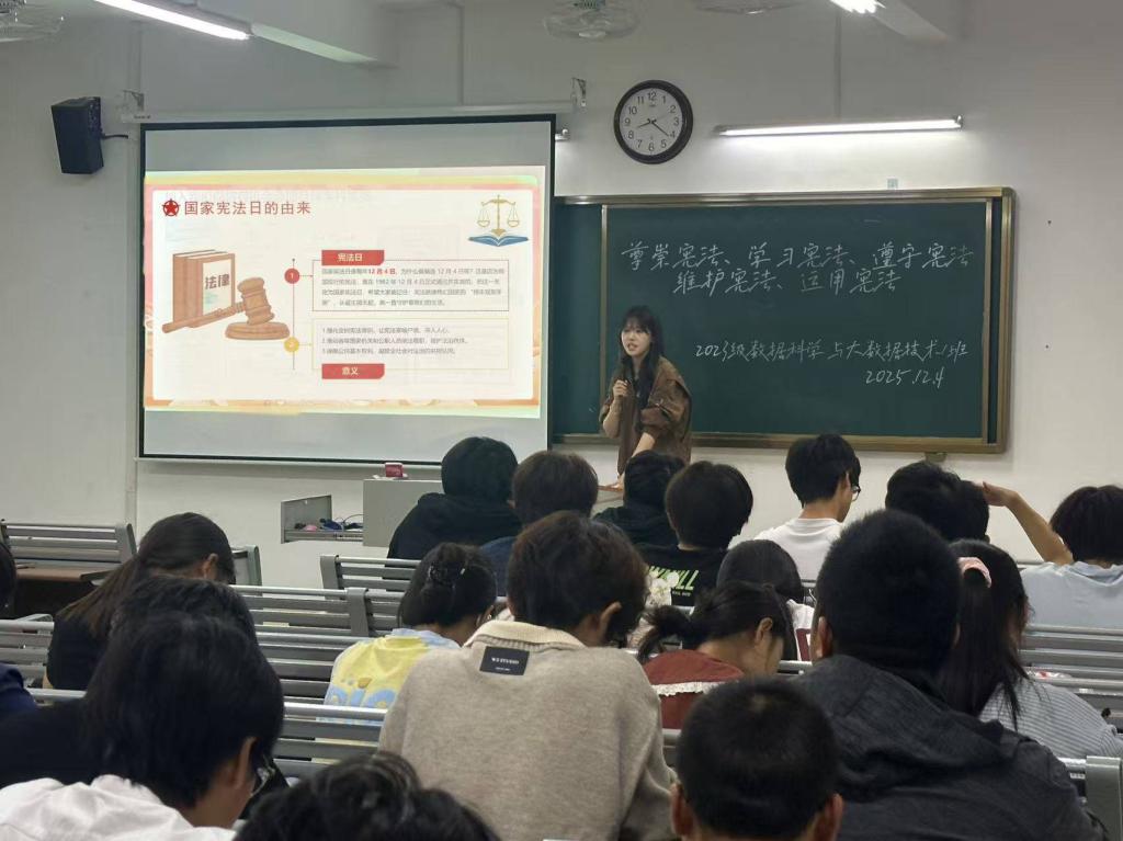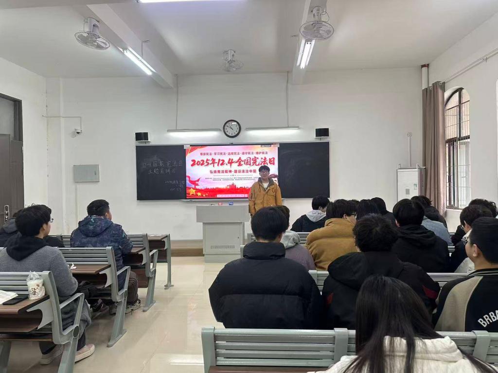 为深入学习宣传习近平法治思想,大力弘扬宪法精神,引导青年学生增强宪法意识、树立法治观念,在第十二个国家宪法日来临之际,太阳成集团tyc522cc组织2023级、2024级和2025级各班级开展“12・4”国家宪法日主题宣讲活动。