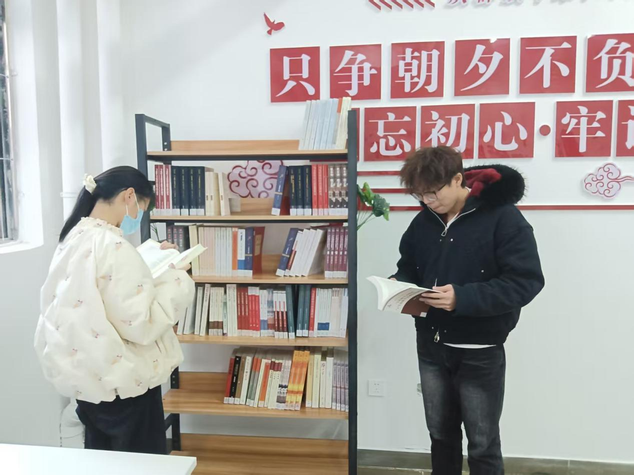 理论学习的“充电站”:师生可就近借阅红色经典,深化对党的路线方针政策的理解。