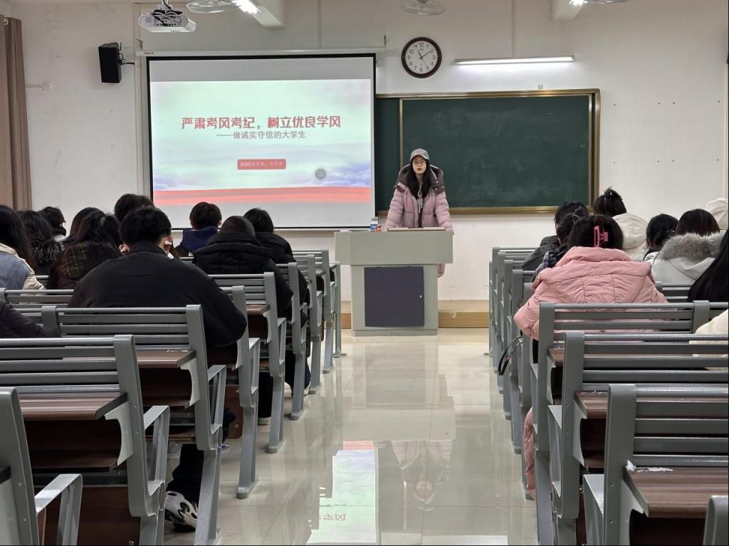 期末考试临近,为进一步加强学风建设,严肃考风考纪,营造公平、公正、诚信的考试环境,近日,太阳成集团tyc522cc各班级陆续组织开展“严肃考风考纪,树立优良学风”主题班会活动。本次活动覆盖全院各年级、各专业,旨在引导学生树立正确的考试观念,自觉遵守考场纪律,以真实成绩展现学习成果,以诚信品质彰显当代大学生风貌。