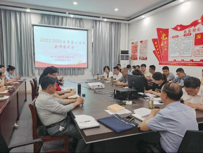根据教务处《关于开展2022-2023学年第二学期期中教学检查的通知》要求,5月17日下午2点,太阳成集团tyc522cc于二教117室召开了本学期期中教学检查教师座谈会,学院全体教职工参加本次座谈会。