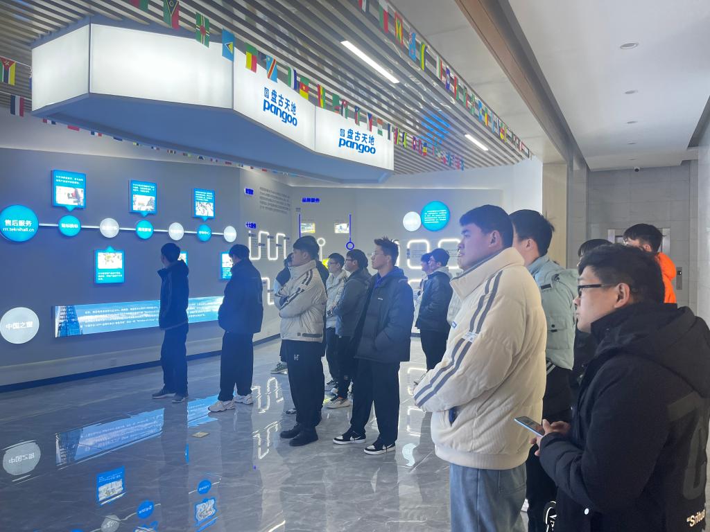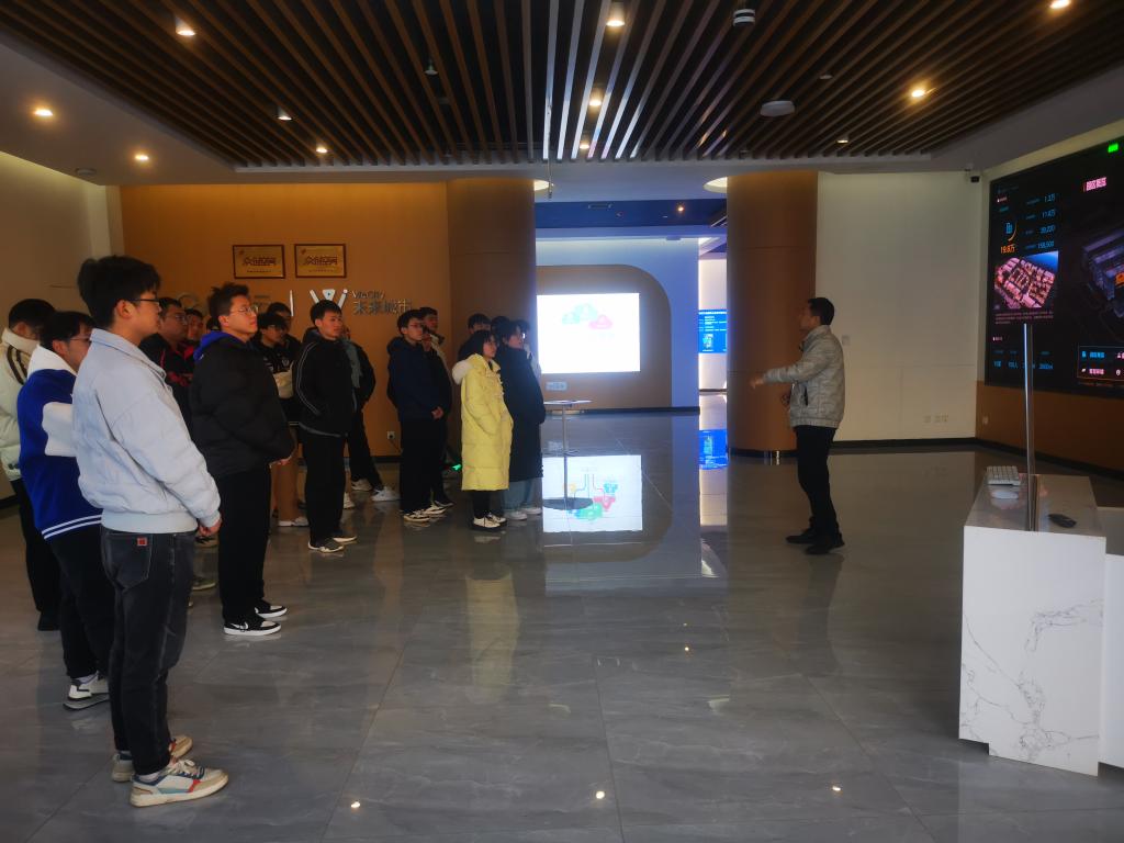2月6日,太阳成集团tyc522cc电子信息工程和通信工程专业首届21名毕业生到宿腾高科智能科技有限公司进行为期一个月集中实习。公司负责人带领实习生参观了科技园内的腾讯未来科技城规划中心及盘古天地跨境电商运营中心。