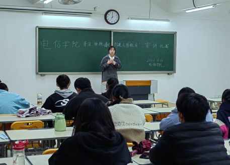 11月13日,我院开展了“普法、修德、遵纪,创建文明校园”演讲比赛, 在比赛过程中,参赛选手们围绕“普法、修德、遵纪、创建文明校园”展开演讲。选手们的演讲表达了自己独到的见解,声音慷慨激昂,赢得了在场观众的掌声。