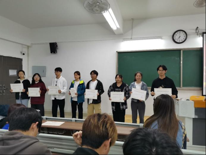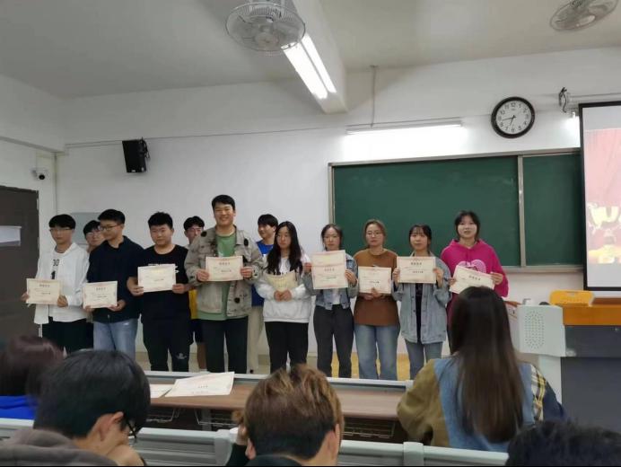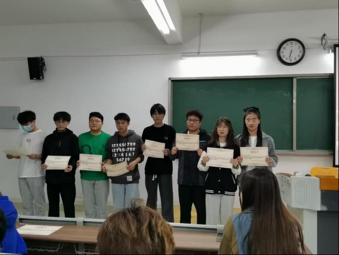 荣获演讲比赛奖项的同学有刘紫君、王腾达、任东、张海新、汝妍妍、余乐、徐娜娜、王露芳、王阳群、时宇彤、袁铖。由刘倩老师为获奖同学颁奖。