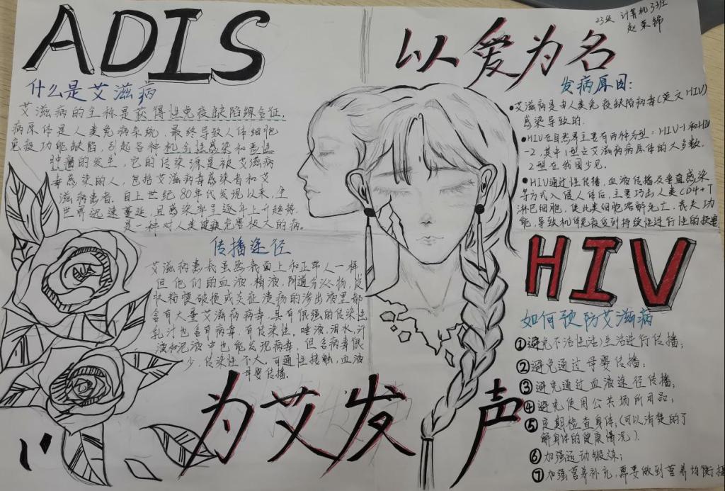 活动伊始,电信学院的同学们积极参与,发挥自己的想象力,开始创作手抄报。他们用画笔在白纸上尽情挥洒,将艾滋病基本知识、传播途径、流行趋势,以及艾滋病对自己、家庭、社会的危害和如何有效防控等内容融入其中。