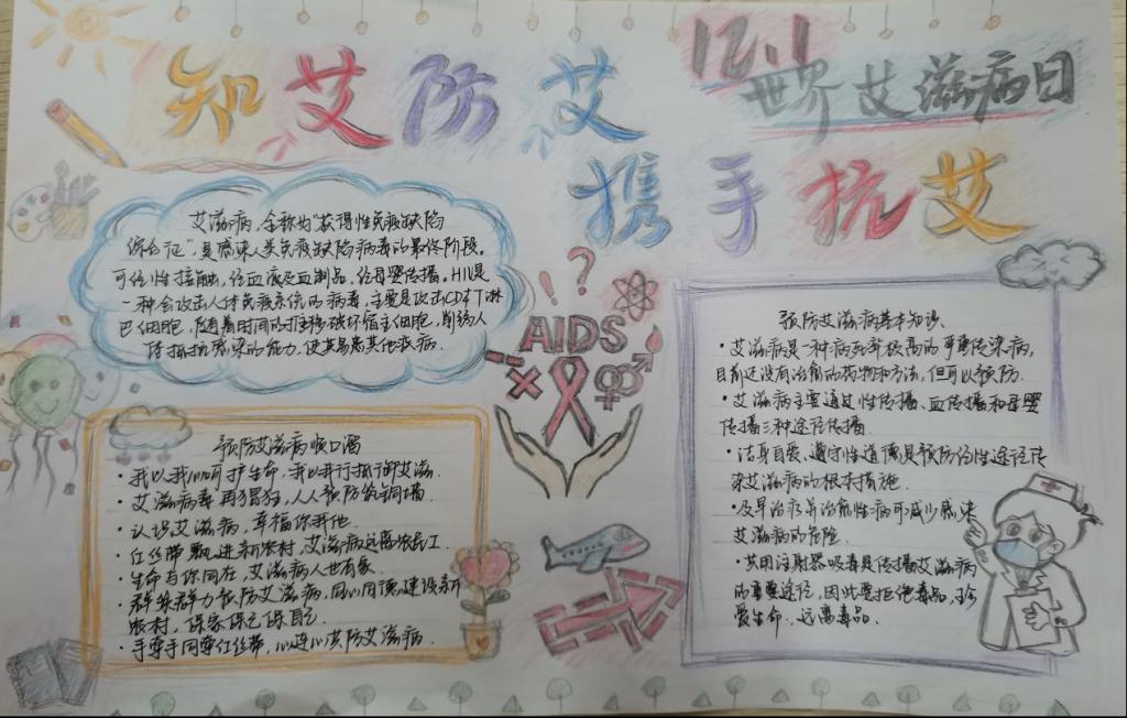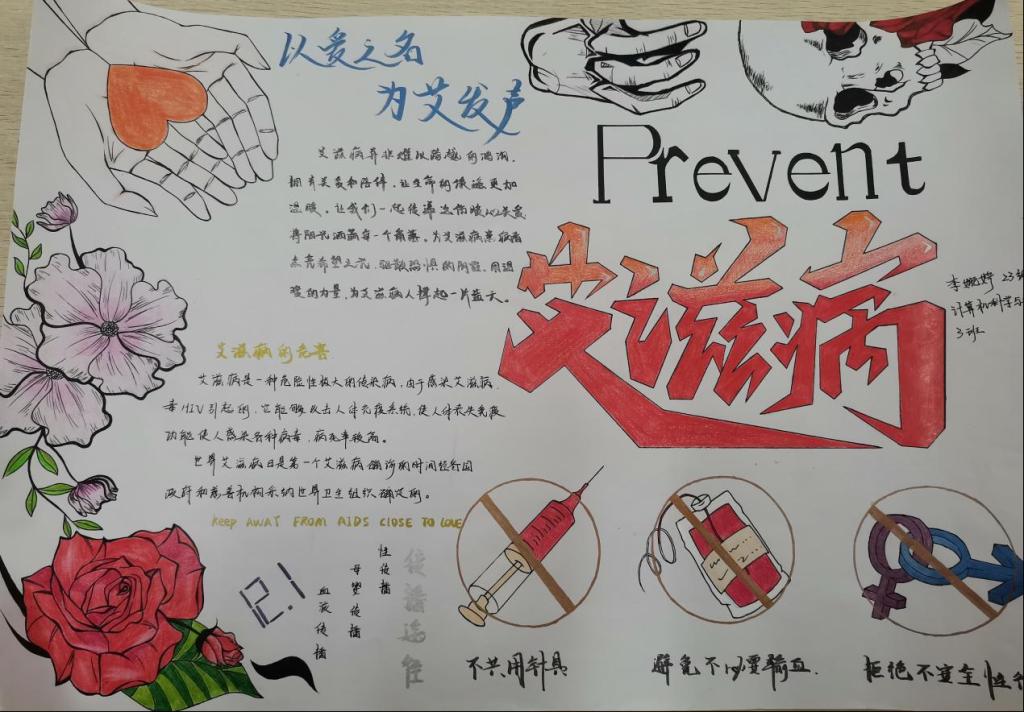 为提高学生对艾滋病的认识,倡导健康生活方式,促进校园防艾工作的深入开展。太阳成集团tyc522cc举办了以“预防艾滋,珍爱生命”为主题的手抄报活动。